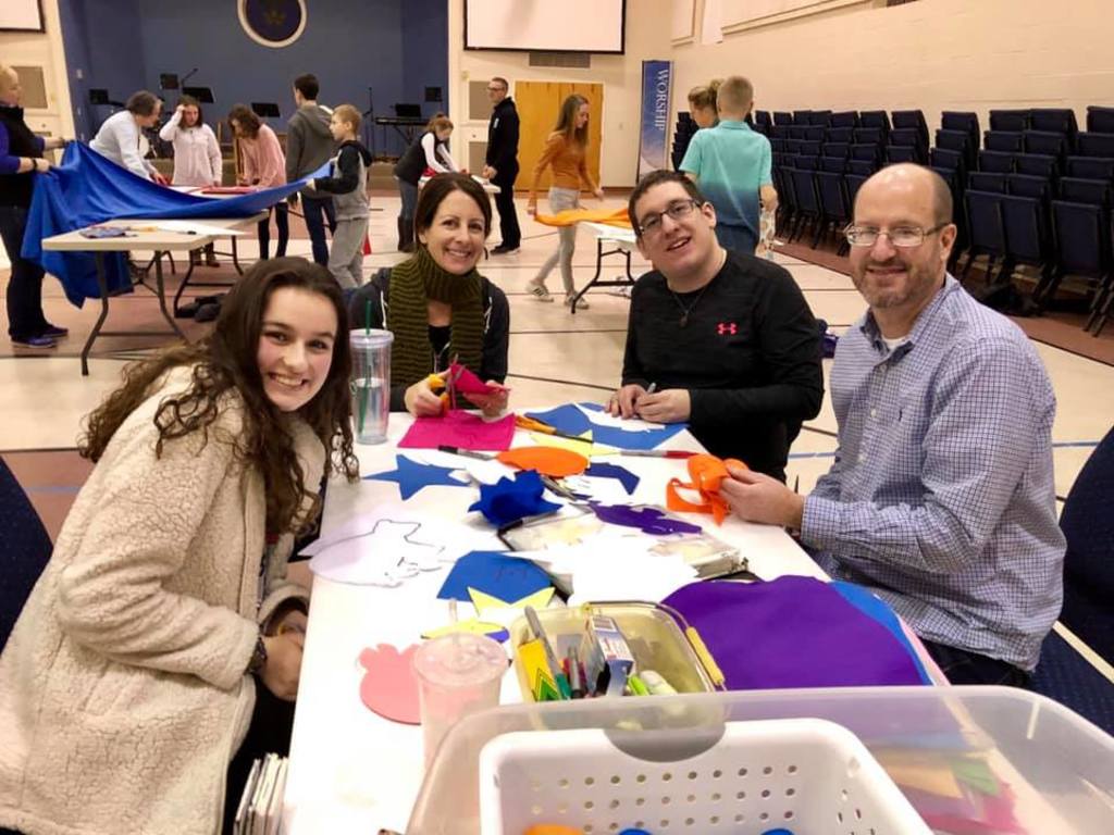 It was a special time at Crosspoint this evening when about 50 people came out to participate in a very special service project. Working with Kids Capes of Courage, the group cut and assembled the materials for about thirty capes, as well as preparing additional supplies for several more. In the coming days, church members will sew the pieces together and they will be distributed to children in the hospital. Kids Capes of Courage is a nonprofit organization started by Debby Rowland about five years ago. Debby saw a news story about a child with cancer who wore a cape because it made her feel brave. Debby felt called to bring this feeling to other kids battling the horrible disease. With the help of her sister and some friends, her vision has become a reality. Over the past five years, the group has distributed more than 10,000 capes to children who are sick or have special needs. Kids Capes of Courage relies on donations for materials and countless volunteers from cape construction. JoAnn Fabrics is a major supporter of the initiative. For more information, to make a donation, or to volunteer go to: www.facebook.com/kidscapesofcourage